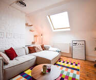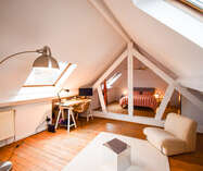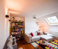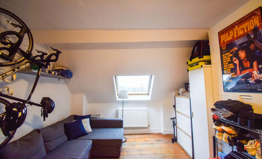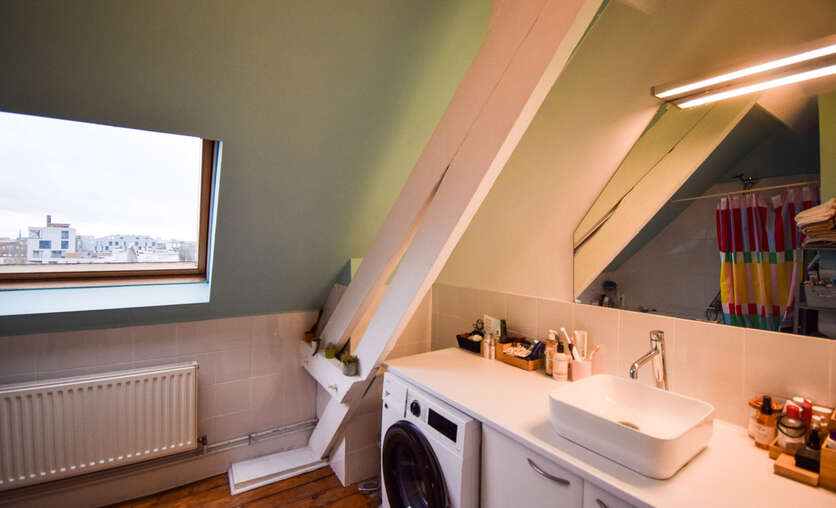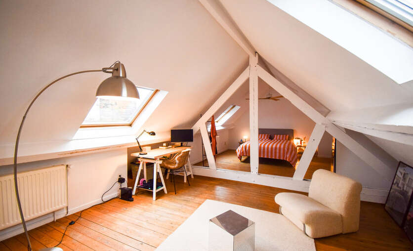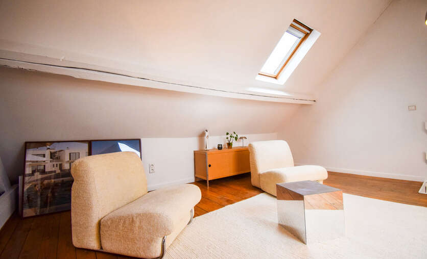 Via een vaste trap bereik je de tweede verdieping, volledig gerenoveerd in een knusse, moderne stijl. Deze verdieping bestaat momenteel uit een sfeervolle design zithoek, een praktische bureauruimte en een tweede slaapkamer. Daarbovenop beschik je nog over een ruime individuele kelder, perfect als extra opslagplaats. Dit appartement combineert toplocatie, authenticiteit, modern wooncomfort en een fantastisch uitzicht. De ideale plek voor wie wil wonen in het bruisende hart van Brussel, zonder in te boeten aan gezelligheid en kwaliteit. Wij nodigen u graag uit voor een bezoek.