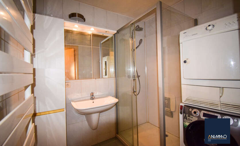 Via de hal bereik je twee ruime slaapkamers. De mooi afgewerkte badkamer beschikt over een douche en lavabo en een aansluiting voor een wasmachine en droogkast. Tot slot heeft het appartement een indivuele autostaanplaats en kelderberging. Ben jij benieuwd om dit mooi appartement te ontdekken? Twijfel dan zeker niet om ons te contacteren.