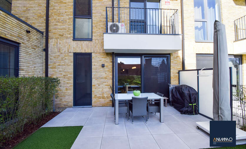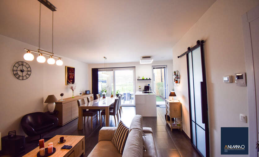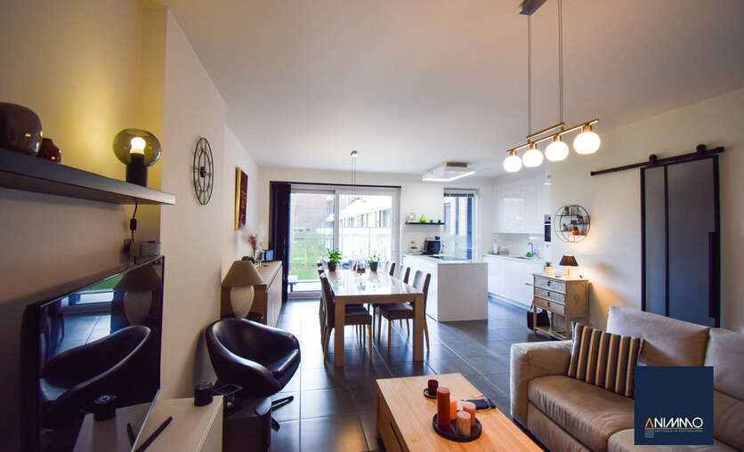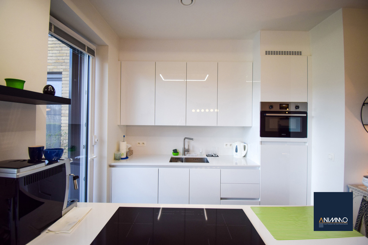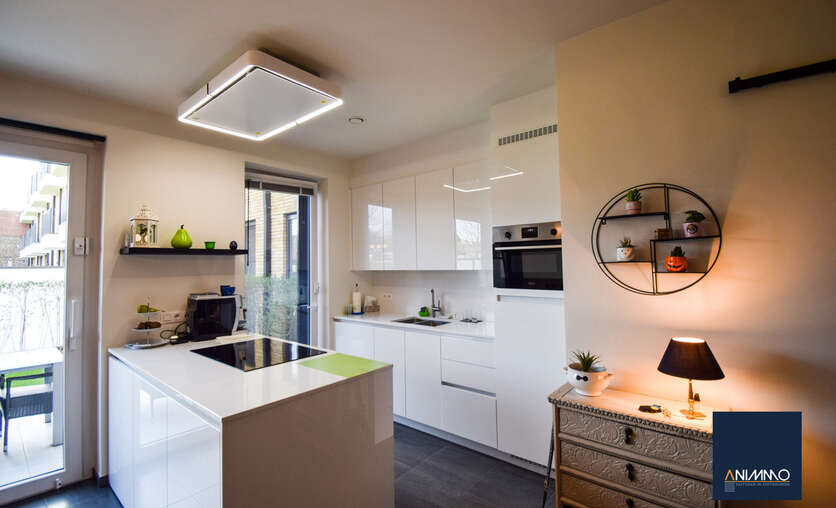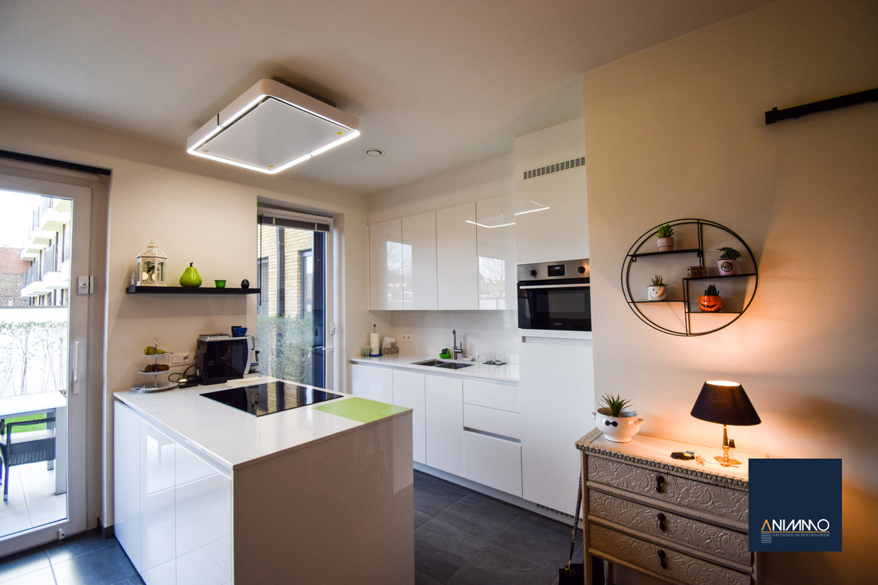 Het appartement is bijzonder energiezuinig en biedt een hoog wooncomfort dankzij de vloerverwarming in alle ruimtes. De lichtrijke leef- en eetruimte geniet van grote raampartijen en biedt een mooi uitzicht op het terras en de tuin. De open, luxueuze keuken is uitgerust met hoogwaardige toestellen en sluit naadloos aan op de leefruimte, waardoor een aangename en open woonbeleving ontstaat.