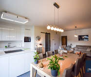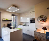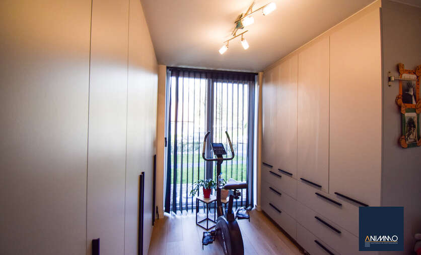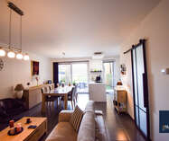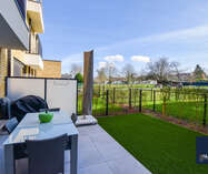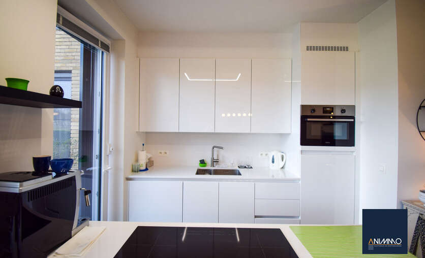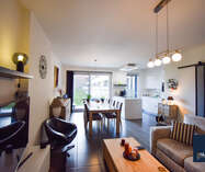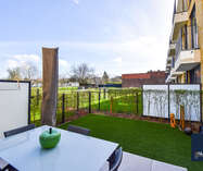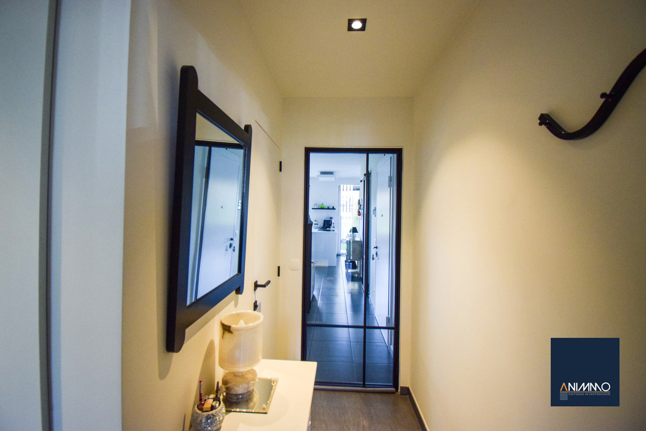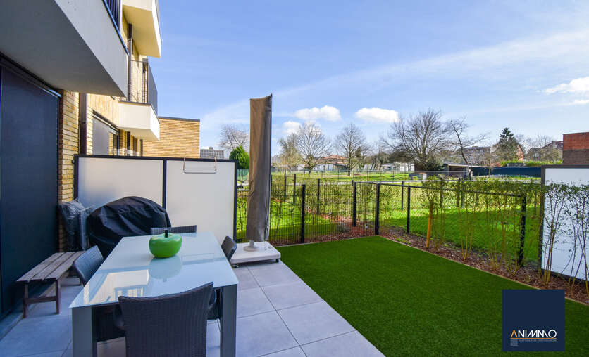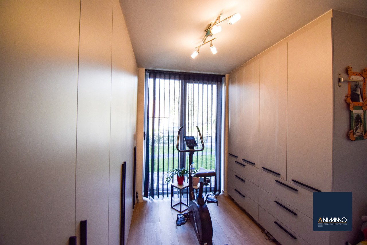 Het appartement is bijzonder energiezuinig en biedt een hoog wooncomfort dankzij de vloerverwarming in alle ruimtes. De lichtrijke leef- en eetruimte geniet van grote raampartijen en biedt een mooi uitzicht op het terras en de tuin. De open, luxueuze keuken is uitgerust met hoogwaardige toestellen en sluit naadloos aan op de leefruimte, waardoor een aangename en open woonbeleving ontstaat.