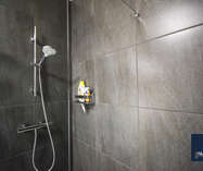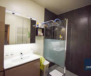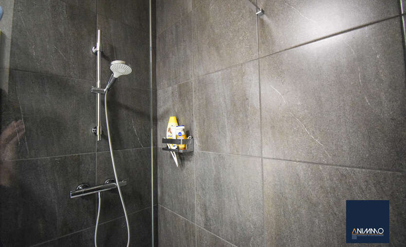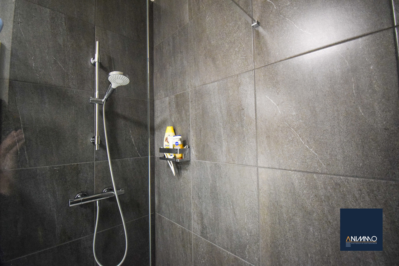 • Een moderne badkamer met stijlvol lavabomeubel en inloopdouche