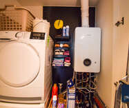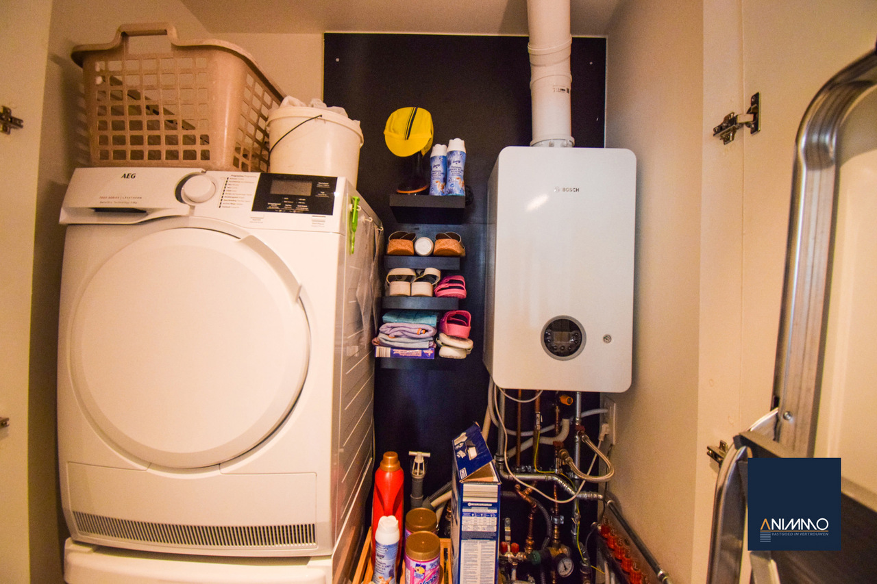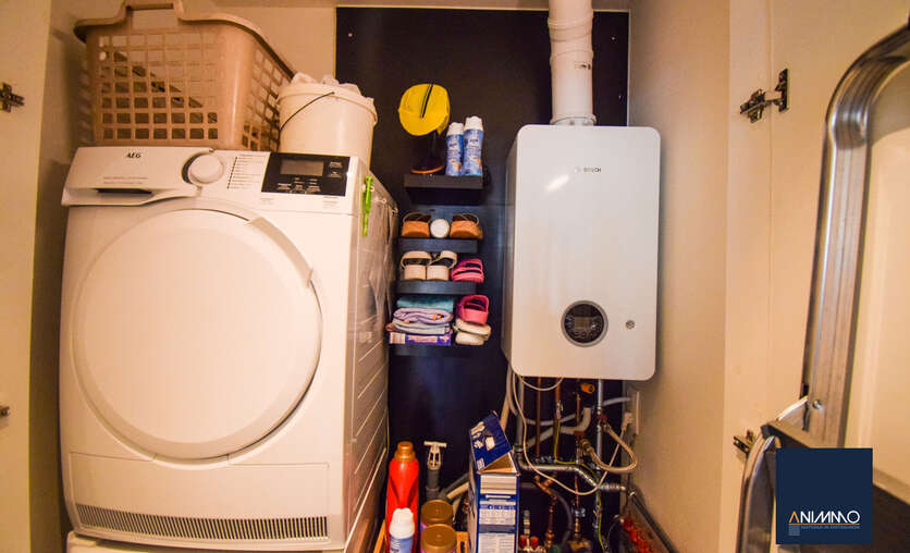 • Een praktische technische ruimte/berging met aansluiting voor wasmachine en droogkast