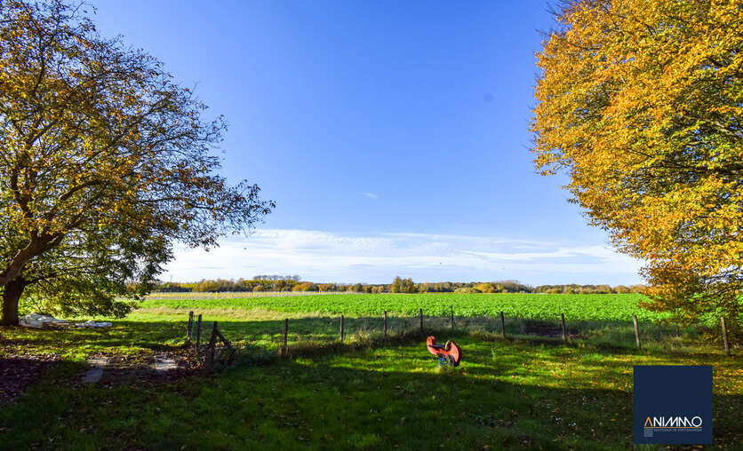 Het overige gedeelte van de hoeve biedt nog veel potentieel voor renovatie en is bijzonder aantrekkelijk dankzij de ruime indeling en de prachtige natuurlijke lichtinval. Op het gelijkvloers bevinden zich een uitnodigende inkomhal, een grote living en salon met uitzicht op de omliggende velden, een keuken met aansluitende kitchenette, een apart toilet, een bureau dat ook als slaapkamer kan dienen, een mansardekamer, een werkplaats en een verwarmingslokaal met toilet. Op de eerste verdieping vind je vier ruime slaapkamers, een badkamer met ligbad, douche en toilet, en een nachthal. Dankzij de grote raampartijen baadt de woning in het licht, wat de authentieke charme nog extra benadrukt. De hoeve beschikt bovendien over een inpandige garage, wat extra praktisch comfort biedt.
