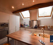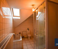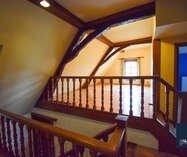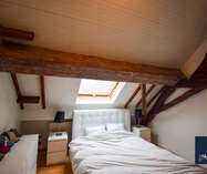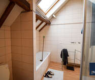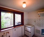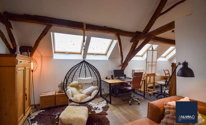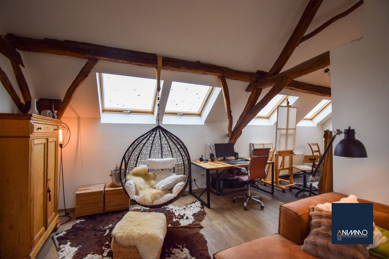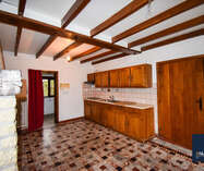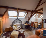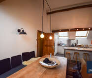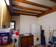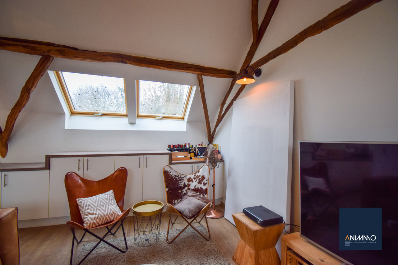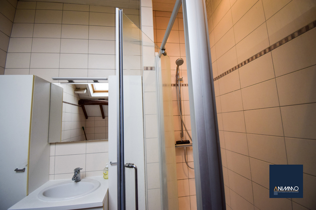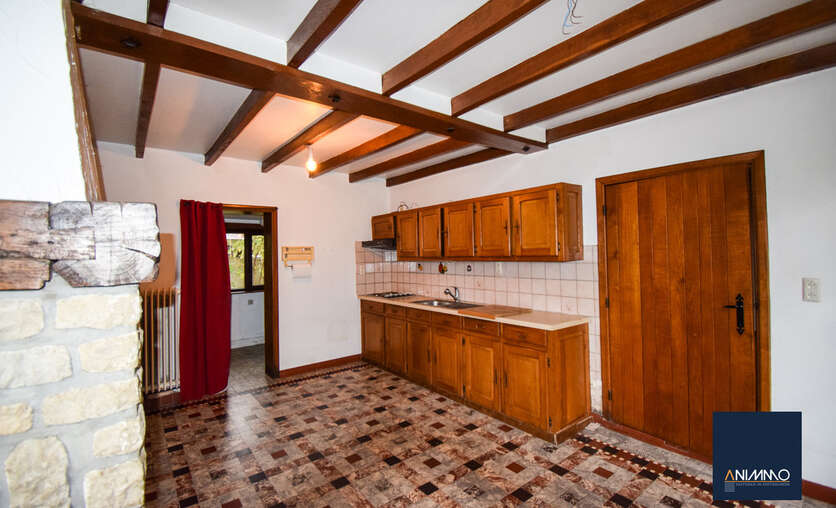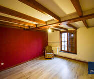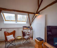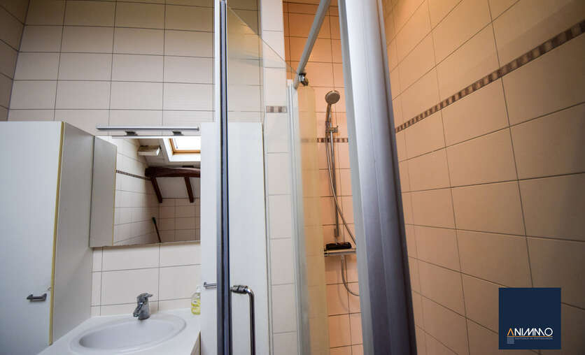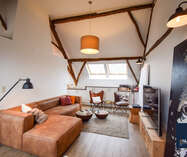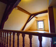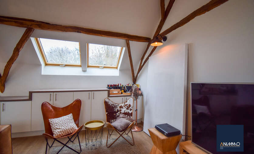 Een deel van de hoeve werd reeds zorgvuldig gerenoveerd tot een stijlvol appartement. Dit appartement beschikt over een praktische wasplaats/berging en een gezellige leefruimte met volledig ingerichte keuken op de eerste verdieping, waar de authentieke elementen mooi bewaard zijn gebleven. Daarnaast is er een slaapkamer en een badkamer met ligbad, douche en toilet.