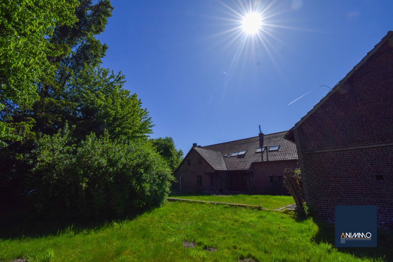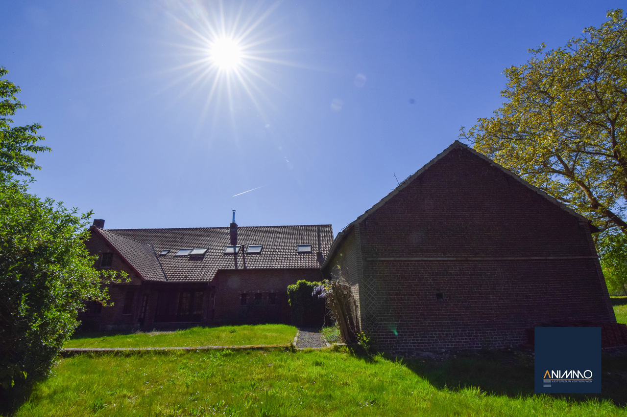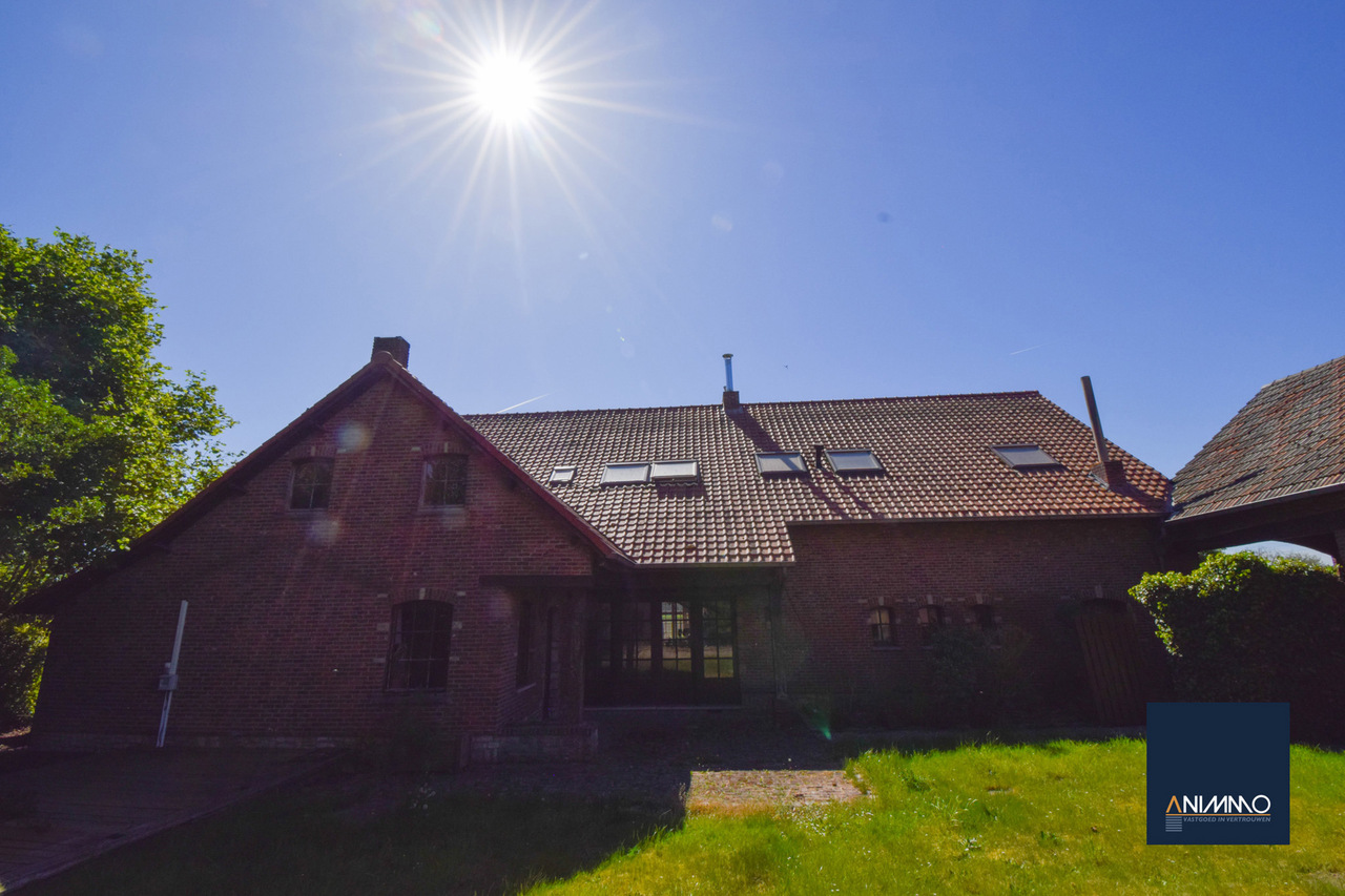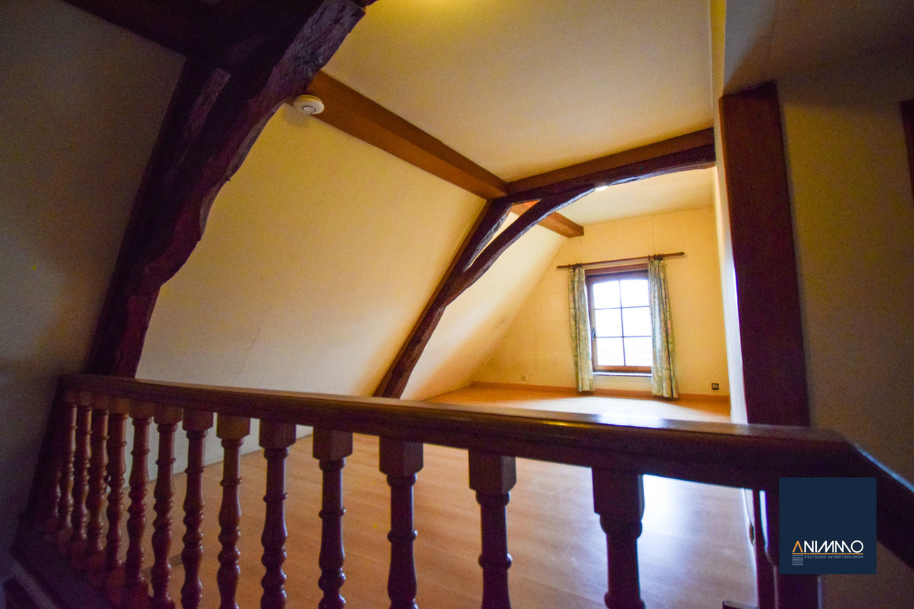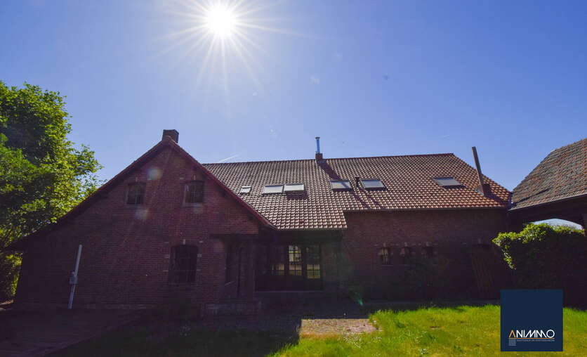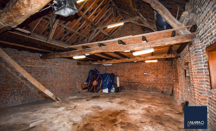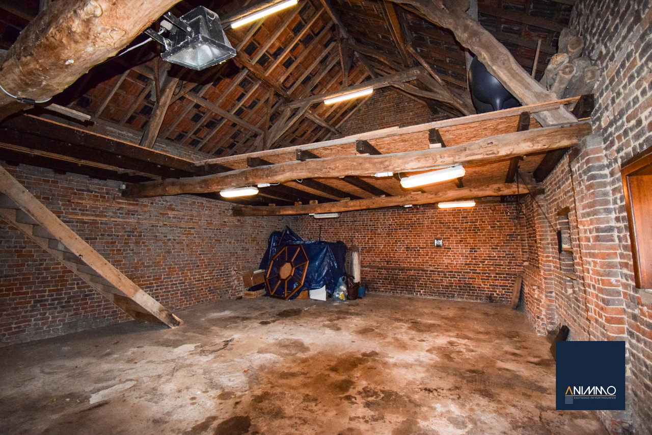 Het overige gedeelte van de hoeve biedt nog veel potentieel voor renovatie en is bijzonder aantrekkelijk dankzij de ruime indeling en de prachtige natuurlijke lichtinval. Op het gelijkvloers bevinden zich een uitnodigende inkomhal, een grote living en salon met uitzicht op de omliggende velden, een keuken met aansluitende kitchenette, een apart toilet, een bureau dat ook als slaapkamer kan dienen, een mansardekamer, een werkplaats en een verwarmingslokaal met toilet. Op de eerste verdieping vind je vier ruime slaapkamers, een badkamer met ligbad, douche en toilet, en een nachthal. Dankzij de grote raampartijen baadt de woning in het licht, wat de authentieke charme nog extra benadrukt. De hoeve beschikt bovendien over een inpandige garage, wat extra praktisch comfort biedt.