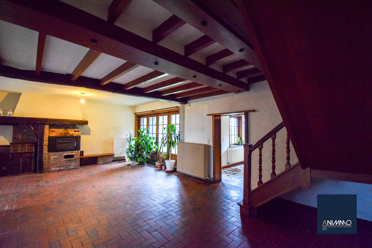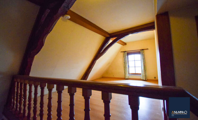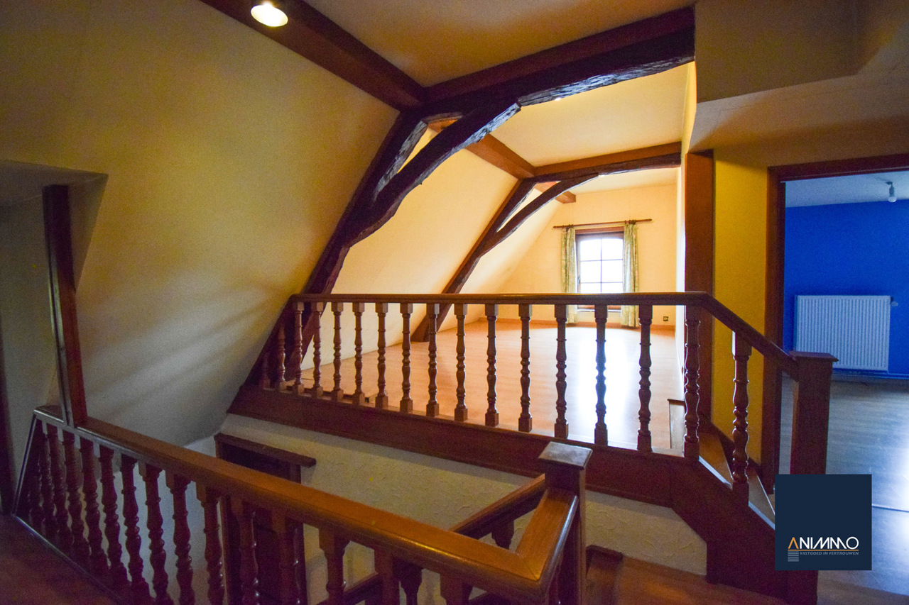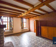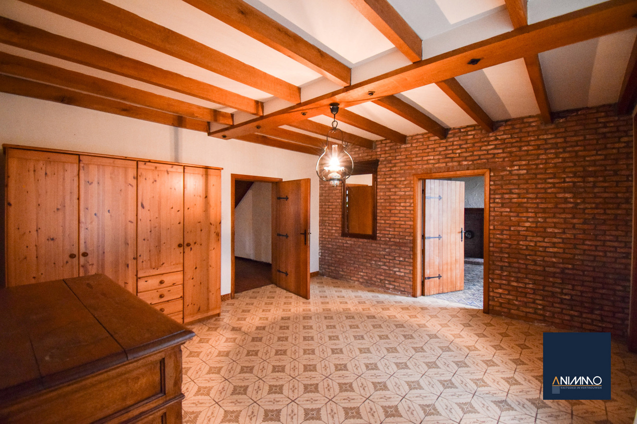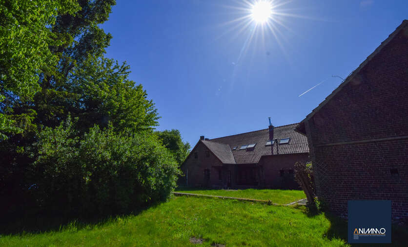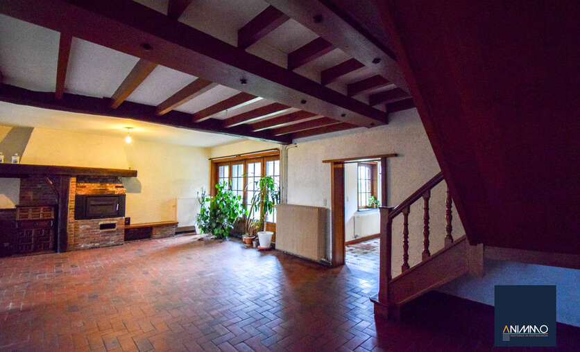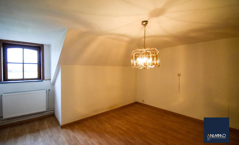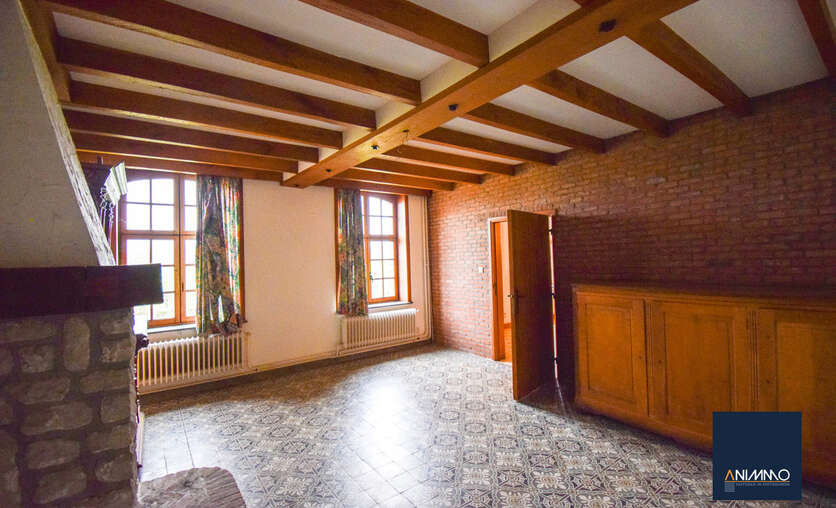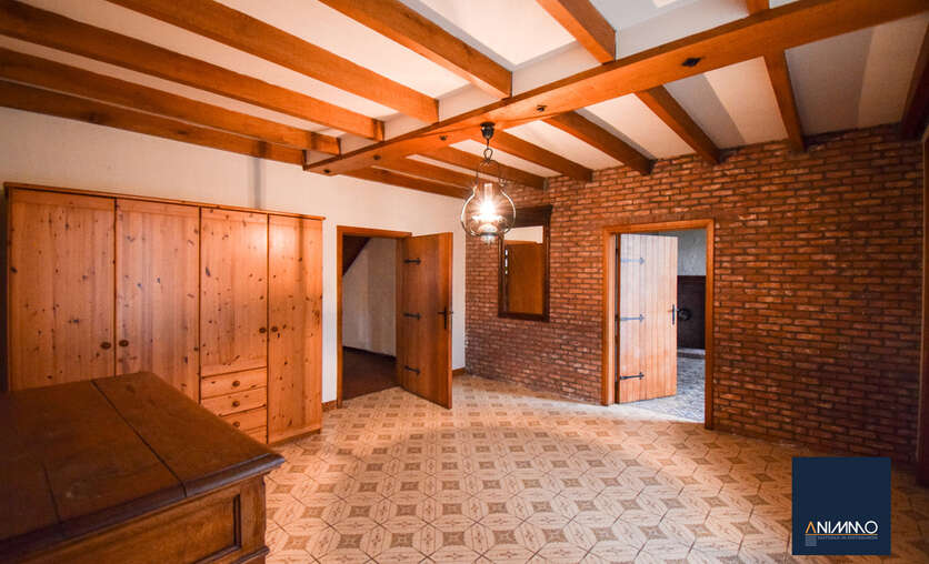 Het overige gedeelte van de hoeve biedt nog veel potentieel voor renovatie en is bijzonder aantrekkelijk dankzij de ruime indeling en de prachtige natuurlijke lichtinval. Op het gelijkvloers bevinden zich een uitnodigende inkomhal, een grote living en salon met uitzicht op de omliggende velden, een keuken met aansluitende kitchenette, een apart toilet, een bureau dat ook als slaapkamer kan dienen, een mansardekamer, een werkplaats en een verwarmingslokaal met toilet. Op de eerste verdieping vind je vier ruime slaapkamers, een badkamer met ligbad, douche en toilet, en een nachthal. Dankzij de grote raampartijen baadt de woning in het licht, wat de authentieke charme nog extra benadrukt. De hoeve beschikt bovendien over een inpandige garage, wat extra praktisch comfort biedt.