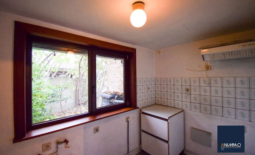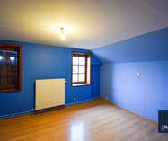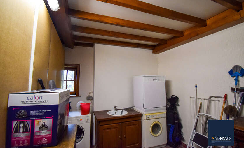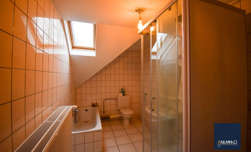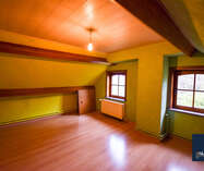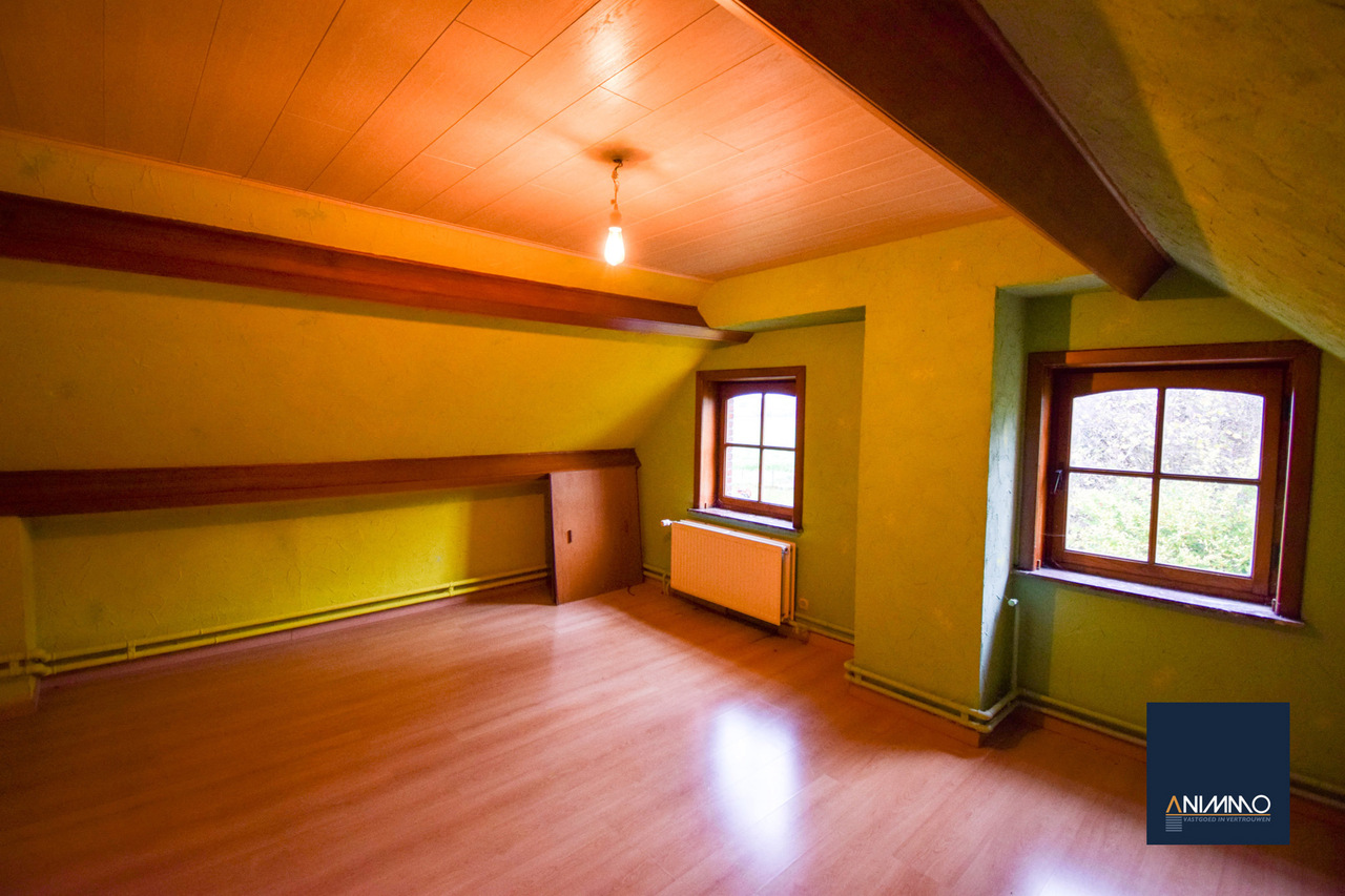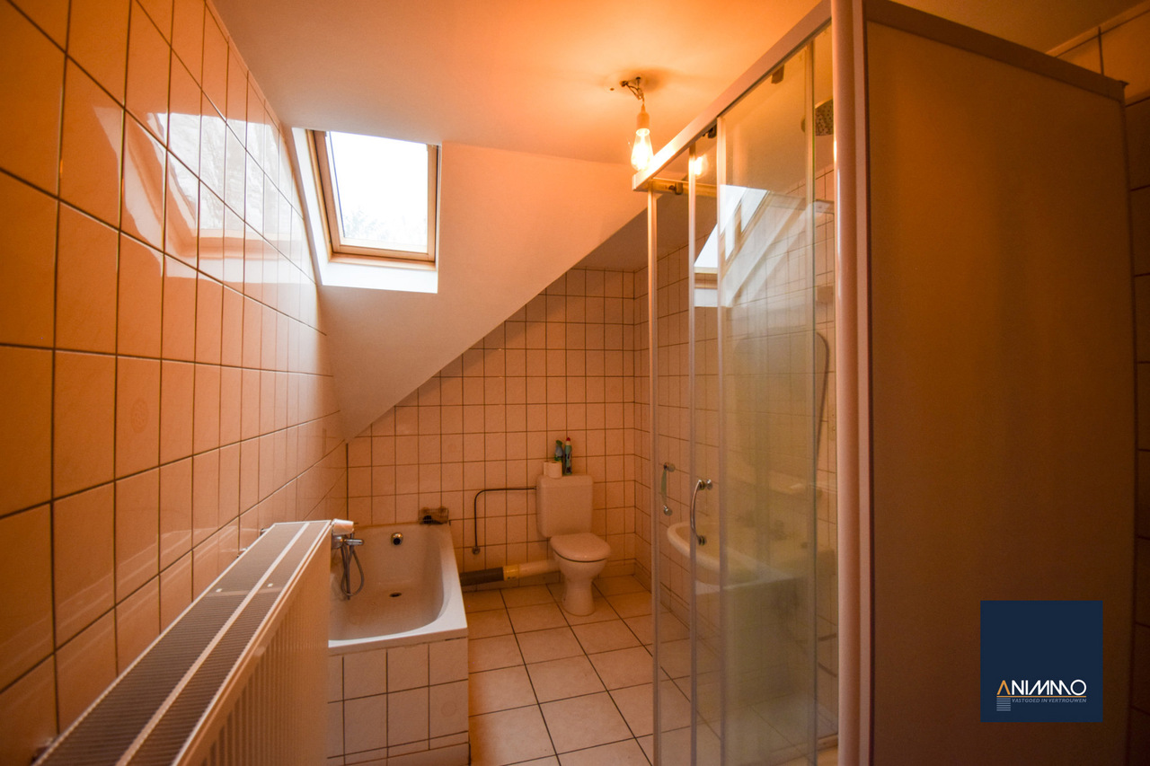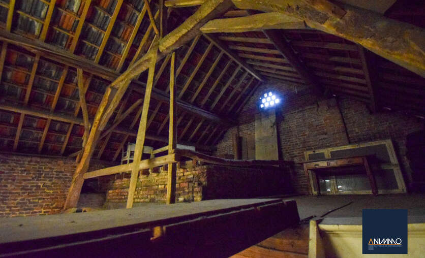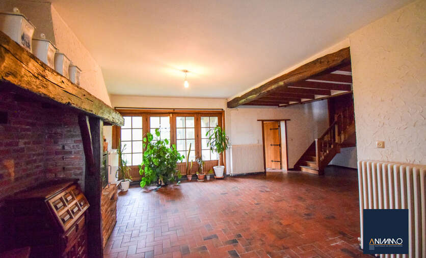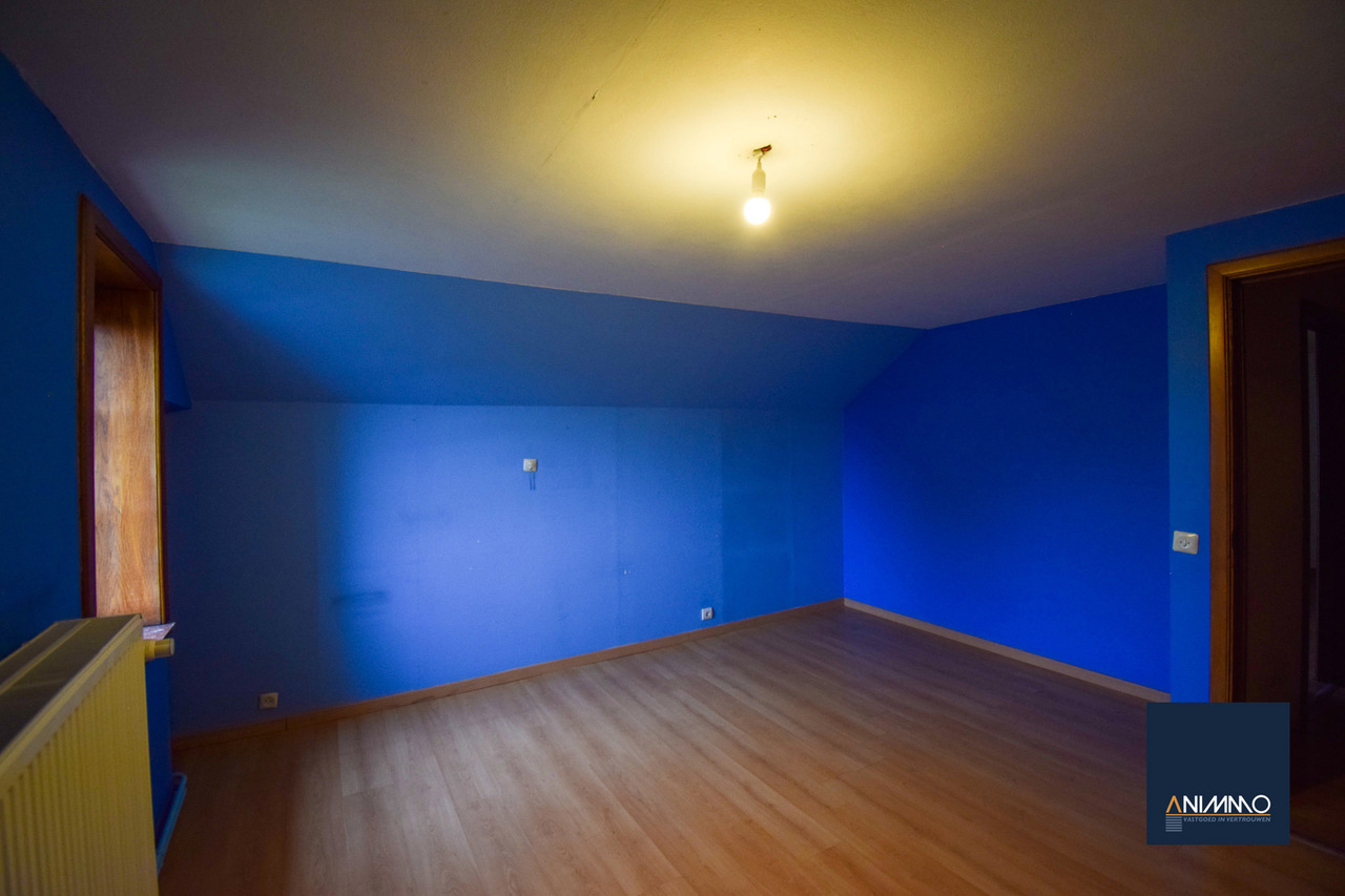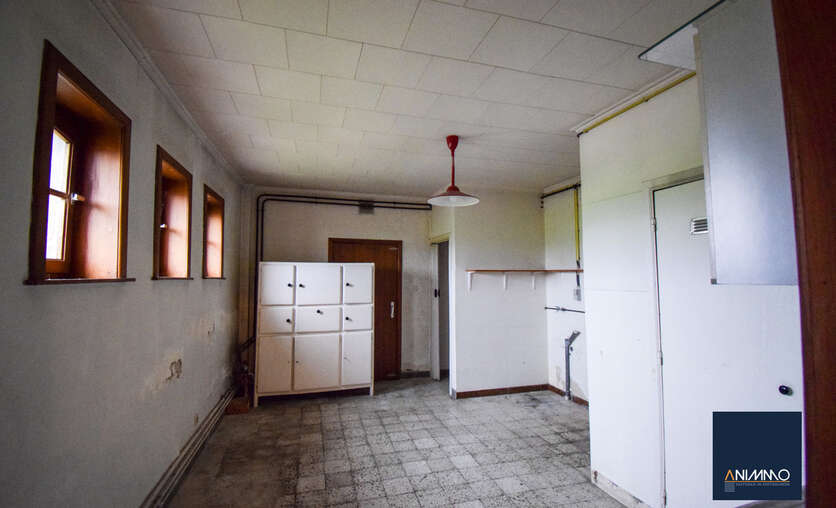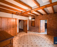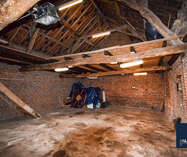 Het overige gedeelte van de hoeve biedt nog veel potentieel voor renovatie en is bijzonder aantrekkelijk dankzij de ruime indeling en de prachtige natuurlijke lichtinval. Op het gelijkvloers bevinden zich een uitnodigende inkomhal, een grote living en salon met uitzicht op de omliggende velden, een keuken met aansluitende kitchenette, een apart toilet, een bureau dat ook als slaapkamer kan dienen, een mansardekamer, een werkplaats en een verwarmingslokaal met toilet. Op de eerste verdieping vind je vier ruime slaapkamers, een badkamer met ligbad, douche en toilet, en een nachthal. Dankzij de grote raampartijen baadt de woning in het licht, wat de authentieke charme nog extra benadrukt. De hoeve beschikt bovendien over een inpandige garage, wat extra praktisch comfort biedt.