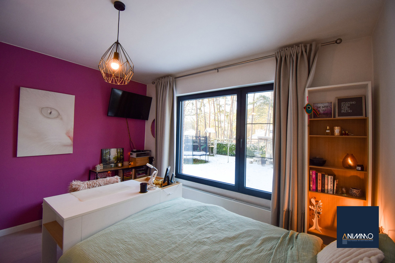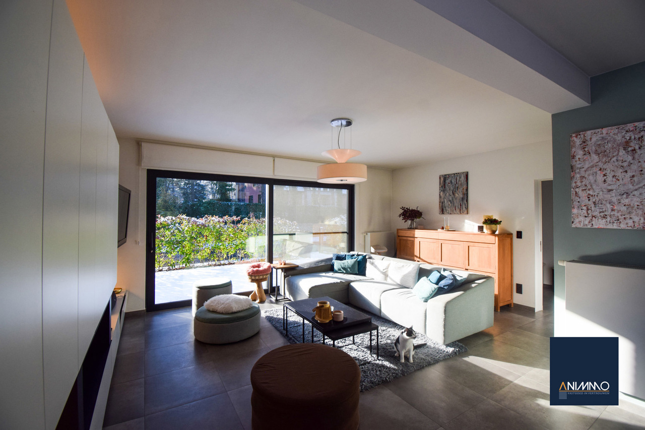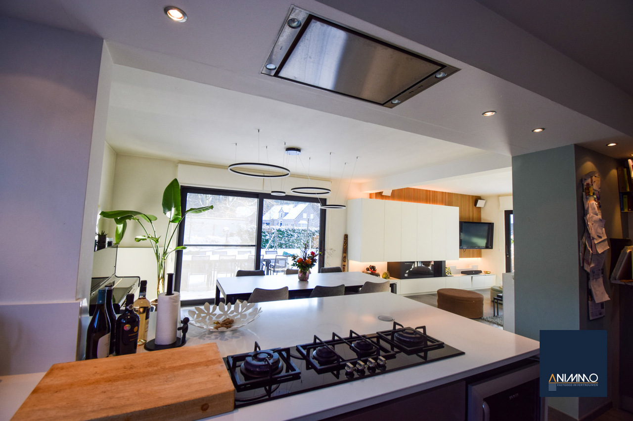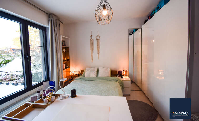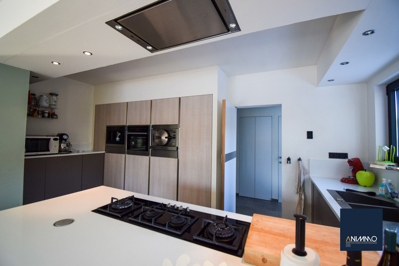 Op het gelijkvloers betreedt u de woning via een inkomhal met traphal en gastentoilet. Verder bevindt zich hier een ruime en lichtrijke leefruimte met een mooi en luxueus ingerichte open keuken, een stijlvolle eethoek en een design living. Deze leefruimte geeft uit op een zuidgericht terras over de volledige breedte van de woning. Daarnaast beschikt dit niveau over een slaapkamer/bureau, een badkamer die nog volledig naar eigen smaak kan worden ingericht en waar aansluitingen voor wasmachine en droogkast zijn voorzien, en twee volwaardige slaapkamers. Op niveau -1 bevinden zich een hobbyruimte, een volledig ingerichte badkamer, een technische ruimte en een aparte berging. Doorheen de woning zorgen ingemaakte kasten voor een strak en harmonieus interieur en extra praktische opbergruimte.