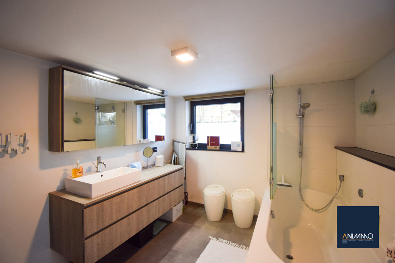 Op het gelijkvloers betreedt u de woning via een inkomhal met traphal en gastentoilet. Verder bevindt zich hier een ruime en lichtrijke leefruimte met een mooi en luxueus ingerichte open keuken, een stijlvolle eethoek en een design living. Deze leefruimte geeft uit op een zuidgericht terras over de volledige breedte van de woning. Daarnaast beschikt dit niveau over een slaapkamer/bureau, een badkamer die nog volledig naar eigen smaak kan worden ingericht en waar aansluitingen voor wasmachine en droogkast zijn voorzien, en twee volwaardige slaapkamers. Op niveau -1 bevinden zich een hobbyruimte, een volledig ingerichte badkamer, een technische ruimte en een aparte berging. Doorheen de woning zorgen ingemaakte kasten voor een strak en harmonieus interieur en extra praktische opbergruimte.
